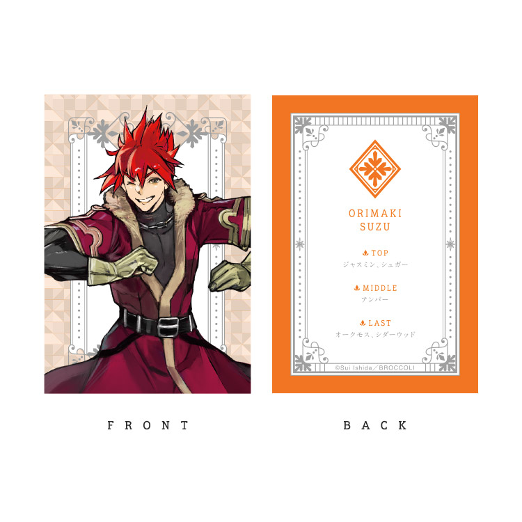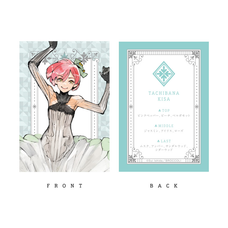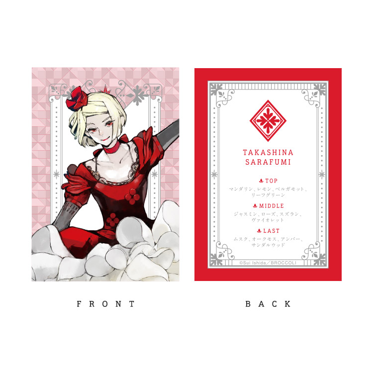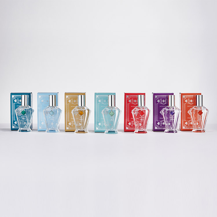 ピンクペッパーの効いたピーチのフルーティな香り立ちから、ジャスミンやアイリスのブーケが花開き、ラストはバルサミックな甘さを帯びたムスクとアンバーが芯のある印象を与える香り。